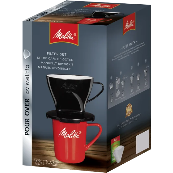 Steig ein in den heißesten aktuellen Kaffee-Trend: „Pour Over“. Dieses Set umfasst einen für die Handfiltration optimierten Kaffeefilter 1×2®, eine Porzellantasse sowie passende Filtertüten® von Melitta®.
