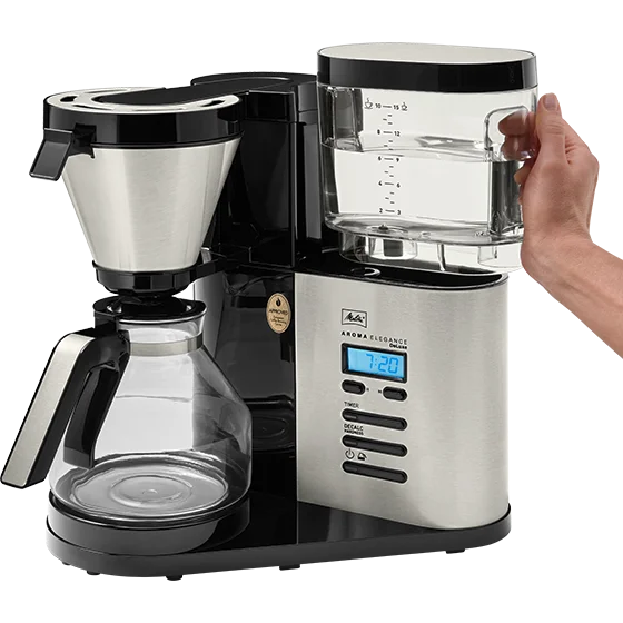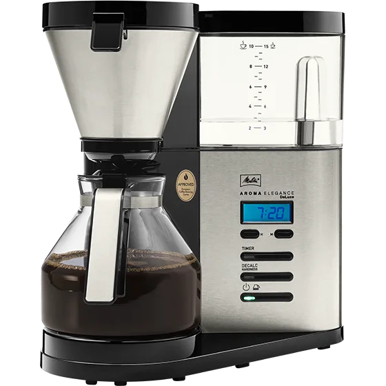 Die Melitta® AromaElegance® DeLuxe vereint Bedienkomfort, Funktionalität und Design auf höchstem Niveau − für ein Kaffeeerlebnis der Spitzenklasse. Vom abnehmbaren Wassertank über die praktische Timer-Funktion bis hin zur AromaControl-Technologie für maximales Kaffeearoma auch bei kleinen Mengen: hier bleibt kein Wunsch offen..