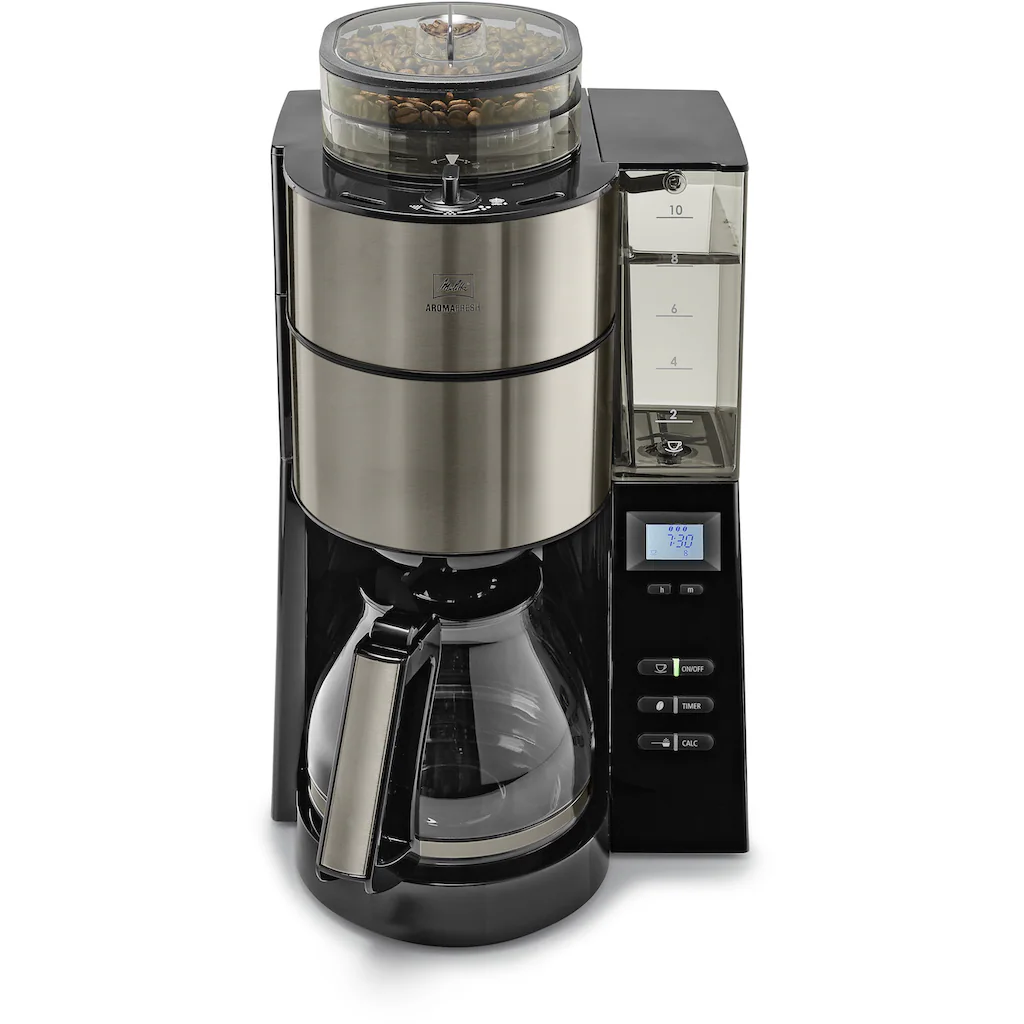 Melitta Kaffeemaschine Mit Mahlwerk »AromaFresh«, 1,25 L Kaffeekanne, Papierfilter, 1×4, Glas 1021-03 Anthrazit