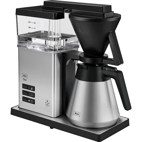Mit der Melitta One® Therm zauberst du Tasse für Tasse ausgezeichnet guten Filterkaffee: aromatisch, langanhaltend heiß und schnell – zertifiziert durch das European Coffee Brewing Centre in Oslo. Ihr minimalistisches Design, die vielen Elemente aus mattiertem Edelstahl und eine Langzeitgarantie von bis zu zehn Jahren sprechen für sich. Durchdachte Ausstattungsmerkmale, eine hochwertige Edelstahl-Thermkanne und ihr einfaches Bedienkonzept machen sie zur „One-and-Only“. Für jahrelange Freude am Kaffee.