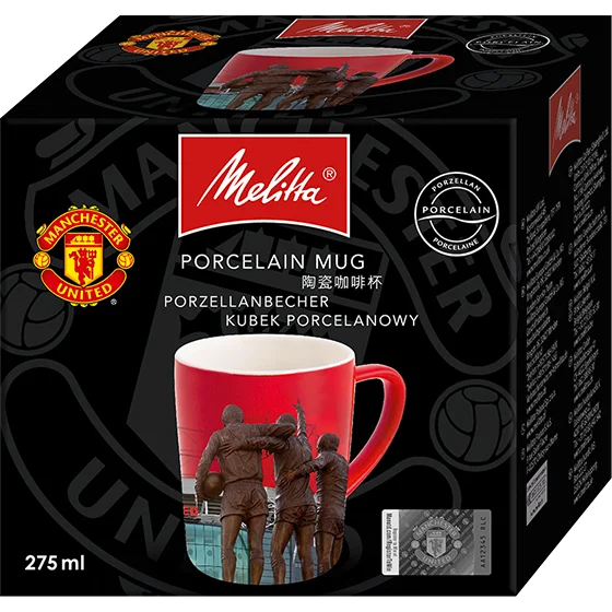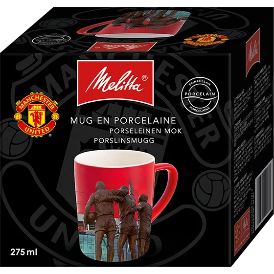Ein Muss für Fans unseres Kaffee-Partners Manchester United! Mit diesem Becher aus hochwertigem Porzellan wird jeder Schluck zu einem ganz besonderen Fan-Genussmoment. Mit einem Fassungsvermögen von 290ml ist dieser Becher für jeden Manchester United Fan der beste Begleiter im Alltag.